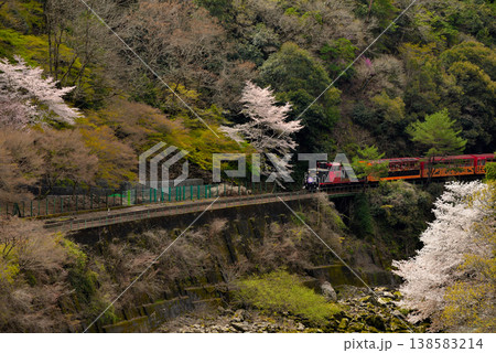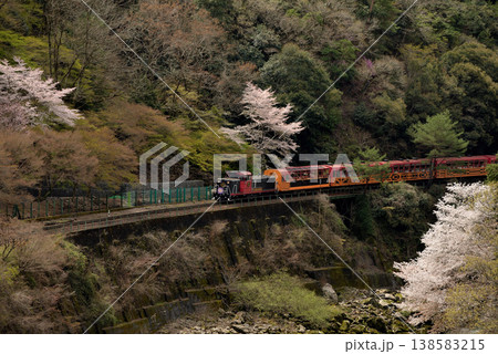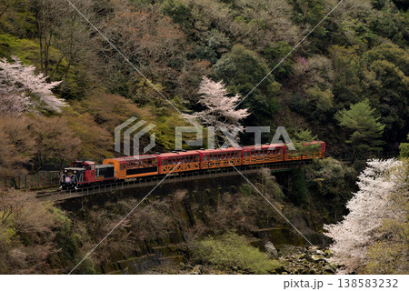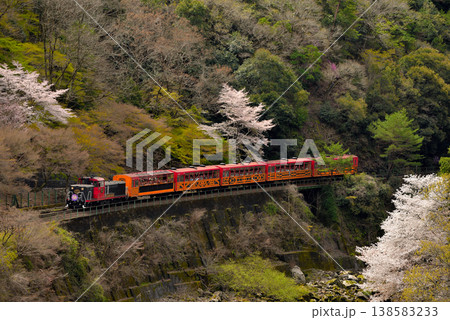 春を行く嵯峨野観光鉄道トロッコ列車嵯峨野7号