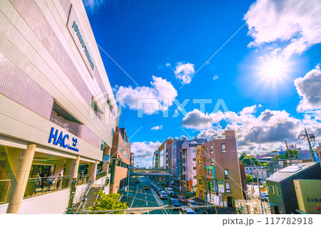日本の横浜都市景観 8月。SOTETSU 二俣川駅前などを望む