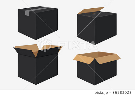 Black Cardboard Open Box. Side View. Package