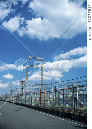 晴れた秋空はシュナイダーブルー 東急鷺沼操車場の上空の青い秋空と白い雲