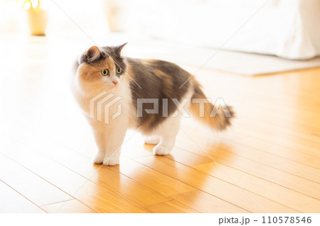 明るい部屋でこちらを見つめる猫