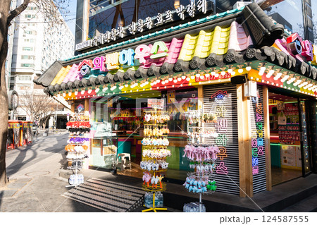 オリーブヤング フラッグシップストアの入口 明洞 春の青空 韓国ソウル
