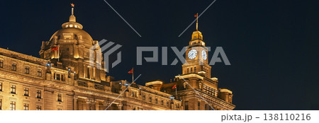 Historic Bund architecture in Shanghai illuminated at night