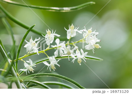 White flower of asparagus racemosus, commonly known as Shatavari, with its thorny stems and fine