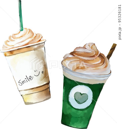 テイクアウトドリンクの水彩風ベクターイラストセット