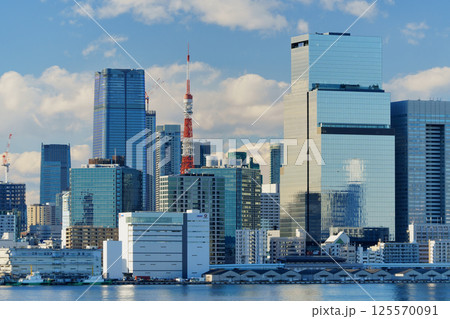東京湾の海岸に建ち並ぶオフィスビル