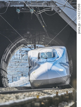 トンネルから飛び出す新幹線 加瀬野トンネル