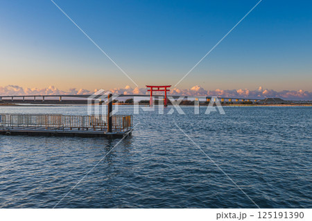 浜松市にある日の出後の弁天島の赤い鳥居の風景(静岡県)