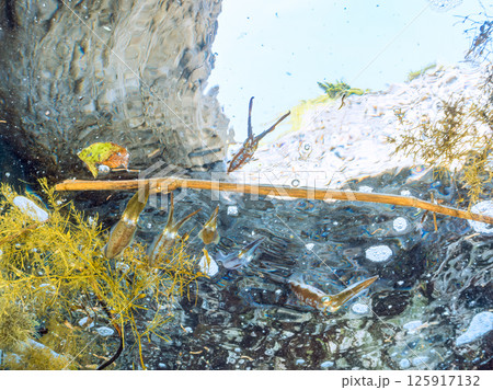 水中洞窟にいる、大きく美しいイタチウオ、イセエビ。 静岡県伊豆半島賀茂郡南伊豆町中木ヒリゾ浜2024