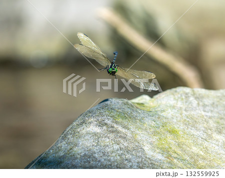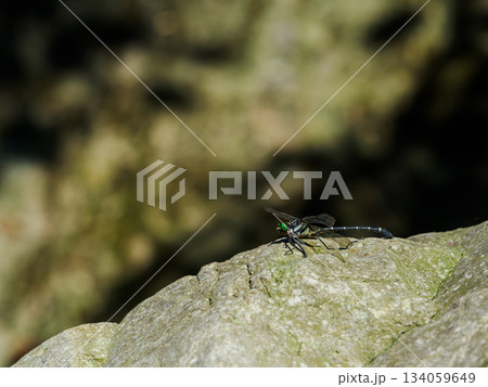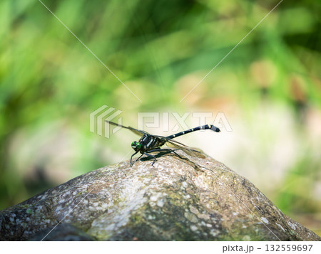 夏の川辺の岩の上のコオニヤンマ トンボ