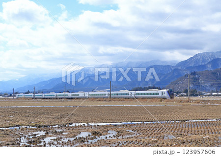 快晴のスキー場から一望する北志賀高原の冬景色 (長野県、山ノ内町、夜間瀬)