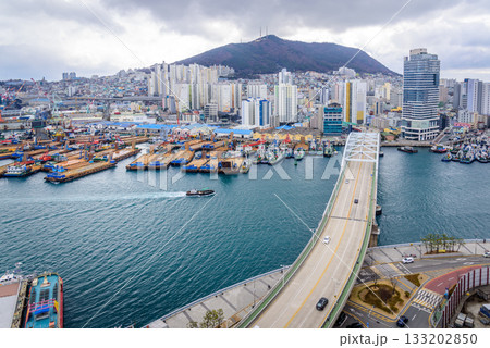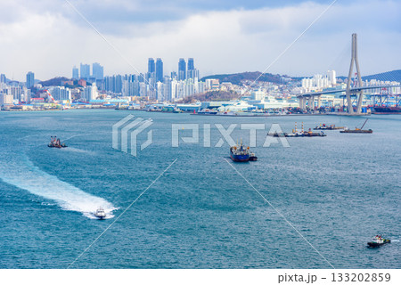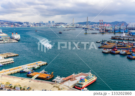 Cityscape of Busan Metropolitan City and Busan harbor in Busan, South Korea