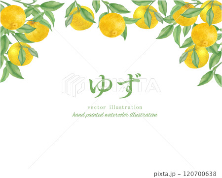 水彩手書きの柚子のイラストのフレーム背景素材