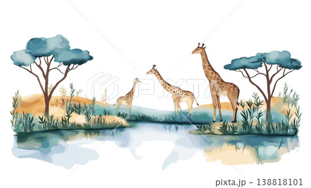 Pilanesberg National Park. Pilanesberg National Park hand drawn watercolor illustration on white background