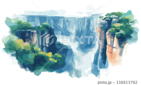 Blyde River Canyon. Blyde River Canyon hand drawn watercolor illustration on white background