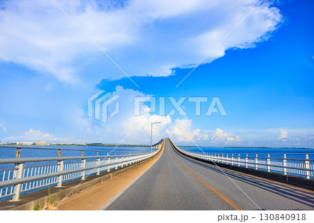 宮崎県の一ツ葉有料道路と青空に続く直線道路