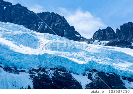 サウスジョージア島 フィヨルドの海 氷河と雪山