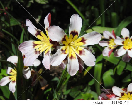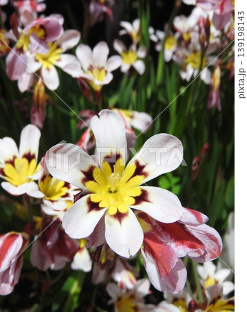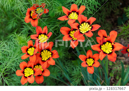 満開花壇の花:アヤメ科:スパラキシス [パピルス]チューリッ