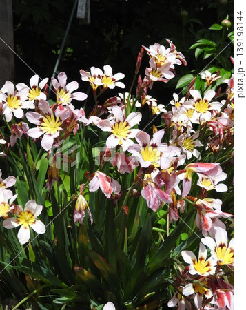 満開の花壇の花:アヤメ科:スパラキシス [パピルス]