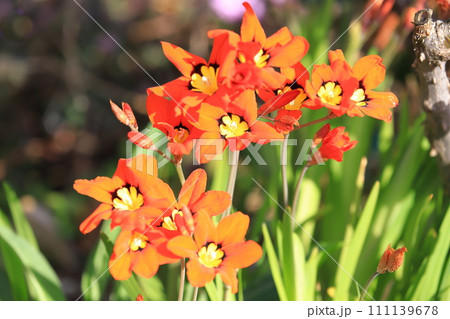 ガーデンで咲く鮮やかなオレンジ色のスパラキシスの花