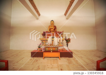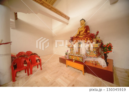 Golden Buddha sitting inside at Spituk Monastery, also known as Spituk Gompa or Petup Gompa, is a Buddhist monastery located in the Leh district of Ladakh, India.