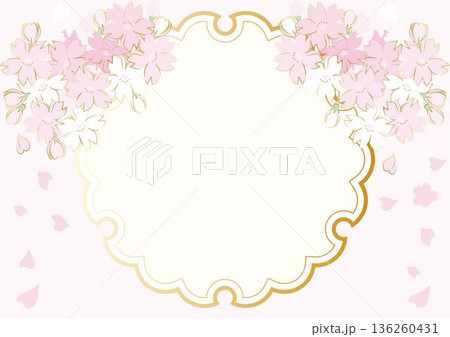 桜の和風の装飾フレーム デコレーション お正月 新春 お花見 和柄 イラスト デザイン 背景素材