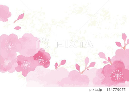 手描き水彩の桜のイラスト。春のお祝い、卒業、入学、和風デザインの背景素材