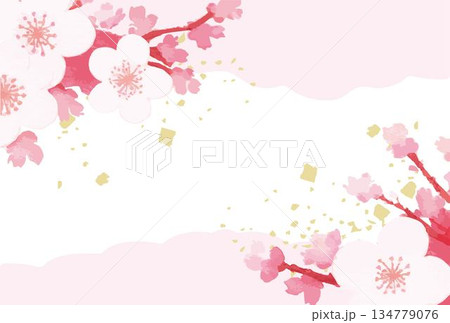 水彩の桜の花と金箔が舞う和風の背景素材 フレーム バナー デザイン コピースペース イラスト素材