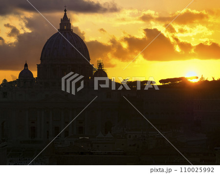 バチカン・サンピエトロ大聖堂と夕焼け空 St. Peter's Basilica, Vatican