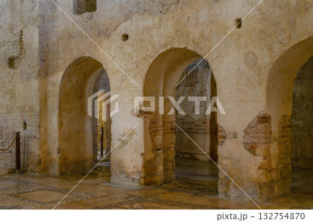 Details and interior of St. Nicholas Church museum, East Roman basilica church of ancient city Myra.Ancient Byzantine Greek Church of Saint Nicholas located in the modern town of Demre.