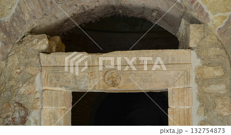 Cross on the ancient wall of the Church of St. Nicholas in Demre, Myra, Antalya Province