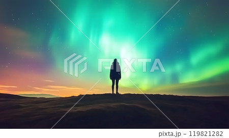Silhouetted Figures Admiring the Aurora Borealis (Northern Lights) Under Starry Skies_2