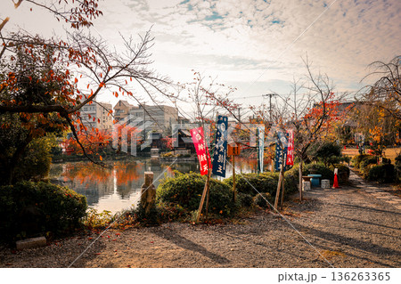 Historic vermilion bridge spanning sacred pond at Shinsenen Nov 24 2025