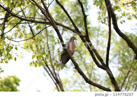 木の上で巣を作るキジバト(Streptopelia orientalis)