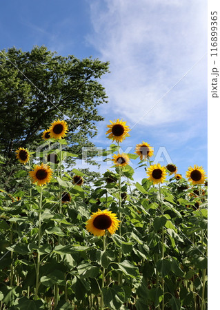 夏空に映える向日葵の花・コピースペース素材「ひまわり畑」 道の駅 旭志(きょくし)