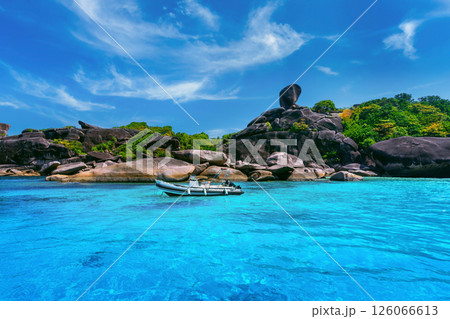 Sailboat rock with white sand beach at Similan island, Phang Nga, Thailand.