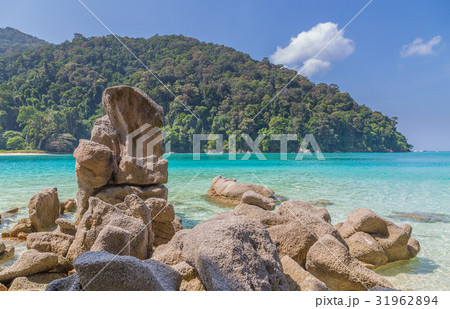 Tranquil Mai Ngam beach in beautiful day, Surin island national park, Phang Nga, Thailand,