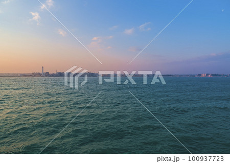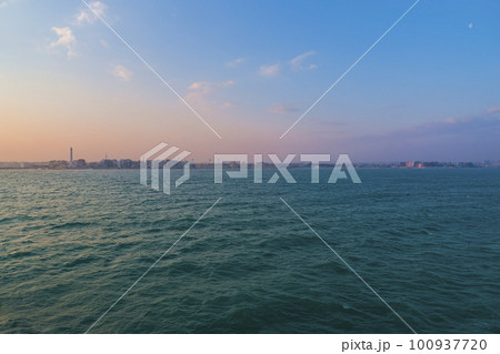 朝日に照らされるイタリア・バーリ港 沖合からの眺め / Bari, Italy