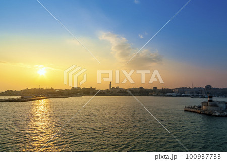 朝日輝くイタリア・バーリ港 沖合からの眺め / Bari, Italy