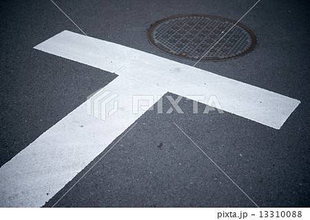 日本で撮影した信号のない交差点の写真。交通イメージ。