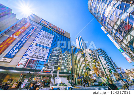 日本の東京都市景観 インバウンドに沸く渋谷。文化村通りからヤマダデンキや道玄坂二丁目東などを望む