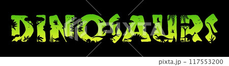 Dinosaur silhouette shapes with name text as Velociraptor, Allosaurus, Iguanodon and Deinocheirus, Ankylosaurus, Baryonyx and Vulcanodon. Jurassic and Cretaceous vector reptiles for posters, t shirts