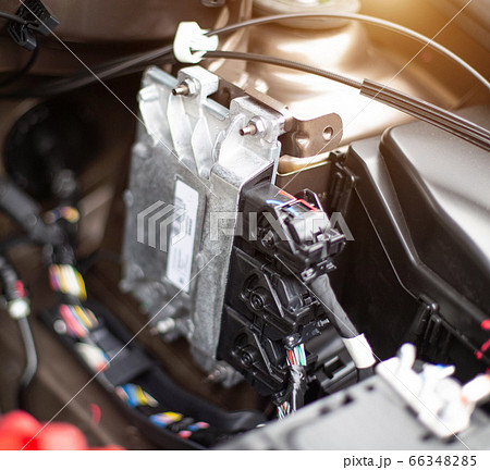 The electronic engine control unit of the car installed in the engine compartment. Car software