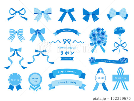 青いリボンと花のギフトデザインセット(爽やか・お祝い・メッセージカード)