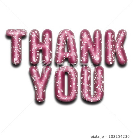 アルファベットの単語イラスト、お礼の言葉のイラスト素材、丸みのある立体的文字素材、樹脂の様な文字素材