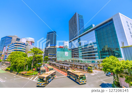 日本の横浜都市景観 関内駅(北口)や関内駅北口広場などを望む=22日