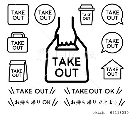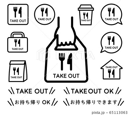 お持ち帰り、TAKEOUTOKのアイコンのセット/イラスト