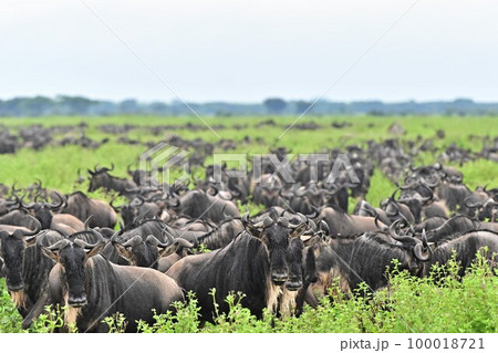 タンザニア セレンゲティ国立公園 シマウマとヌーの群れ