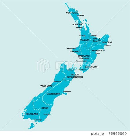 Doodle freehand drawing New Zealand political map with major cities.