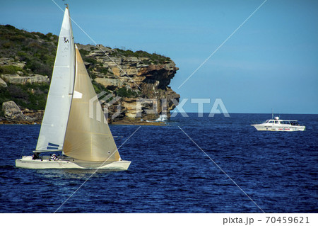 シドニー湾の入り口で遊ぶヨット